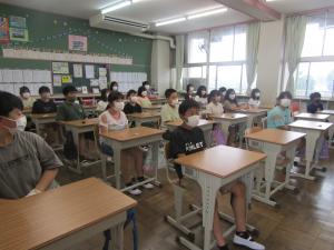長い夏休みも終わり、いよいよ第2学期が始まりました。子供たちはみんな元気に登校しました。新型コロナウイルス感染症対策として、始業式は放送で行いました。2学期の目標を6年生のロクリヤナゲー来夢ディソンさんが発表しました。2学期は、修学旅行・宿泊学習・遠足・校外学習等たくさんの学校行事があります。感染防止対策をしてできる限り実施していきたいと思います。そのためにも、ひき続き感染防止を進めて行きたいと思います。
