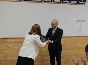 4月27日(土)前PTA会長 安良岡 一樹様の掲額式が行われました。東中学校のために誠心誠意ご尽力くださいました。今後とも東中学校PTA顧問として,子ども達のためにご支援いただければ幸いです。本当にありがとうございました。