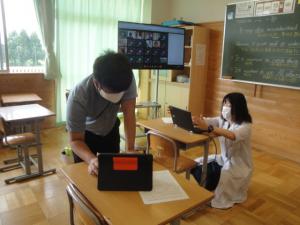 9月15日(水)オンラインでの授業も試行錯誤しながらだんだん先生方も様々なタブレット端末等の機能を駆使して授業に取り組んでいます。教師だけの一方向的な授業ばかりにならないように、チャット機能を使って、生徒が意思表示できるようにしたり、ロイロノートの一覧表機能を使って生徒の考えを集約できるようにしたりしています。9月14日から9月24日までは、5教科中心の授業を展開しています。生徒の学びを確保するために先生方も必死です!
