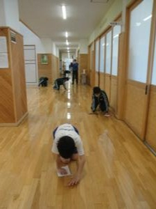 雑巾がけがんばっています!!磨心清掃