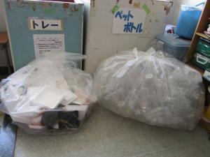毎週水曜日を「リサイクルの日」として、環境委員会がペットボトルとトレーの回収を行っています。