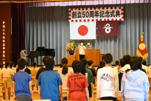 9月30日、西豊田小学校創立50周年記念事業を開催しました。当日は、八千代町長、野村勇様をはじめ、たくさんのご来賓の皆様方のご臨席を賜りました。第一部は記念式典を、そして、第二部では本校卒業生でオペラ歌手の田島秀美さんの記念コンサートを開催しました。教職員、児童一同、この感激をあらたに、これから後もこれまで以上にがんばっていきたいと思います。