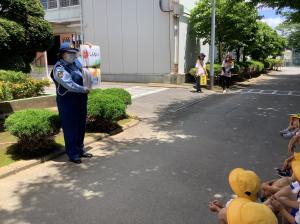 本日、警察、安全協会、スクールサポーター、交通安全母の会、役場の方のご協力のもと、交通安全教室を行いました。